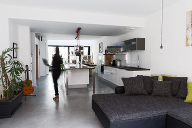 Cette maison a été construite sur les traces d'un ancien atelier de boules de Noël sur une parcelle de 1,8 ares dans un quartier Strasbourgeois.